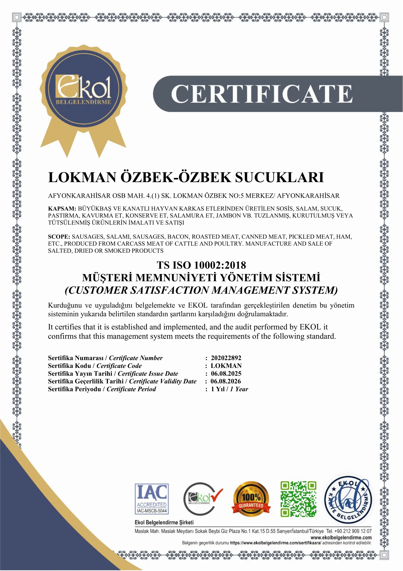 Kalite, hijyen ve gıda güvenliği süreçlerimizi uluslararası standartlarla (ISO 9001, 22000, Helal) belgelendiriyoruz.