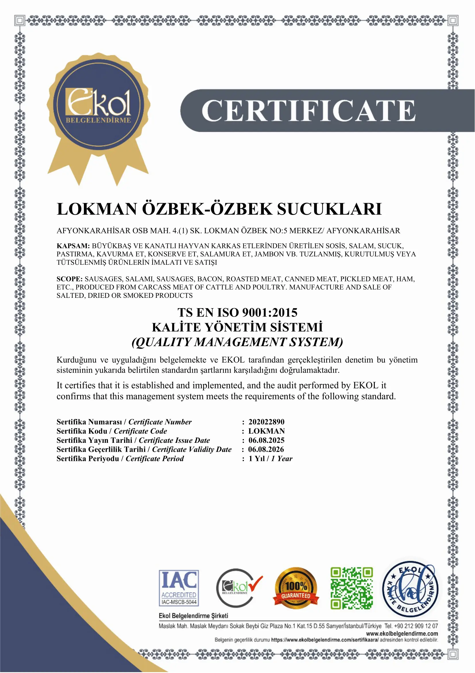 Üretim ve satış süreçlerinde kalite yönetimini standardize eden uluslararası ISO 9001 sistemi.